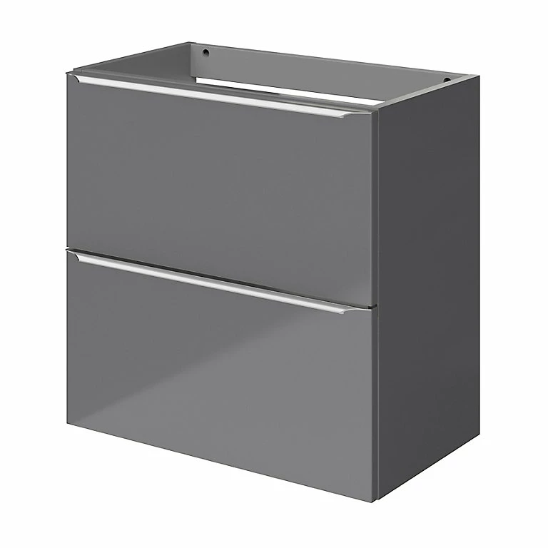 Meuble sous vasque faible profondeur à suspendre GoodHome Imandra gris brillant L. 60 x H. 60 x P. 36 cm