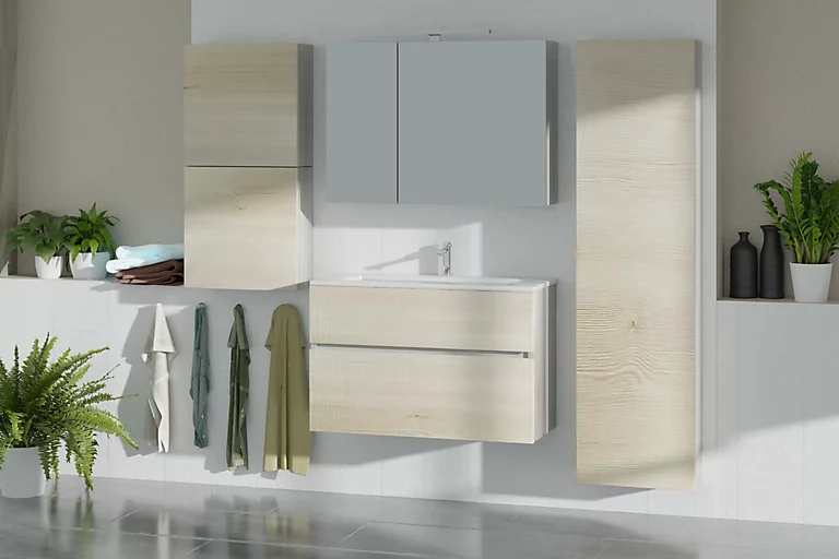 Meuble sous vasque faible profondeur Calao aspect chêne naturel 90 cm