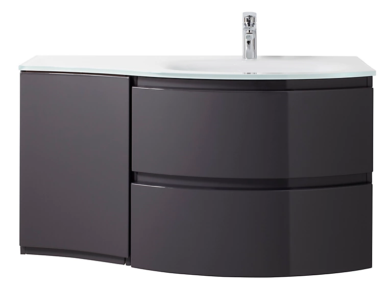 Meuble sous vasque gris anthracite Vague 104 cm + complément gauche + plan vasque en verre