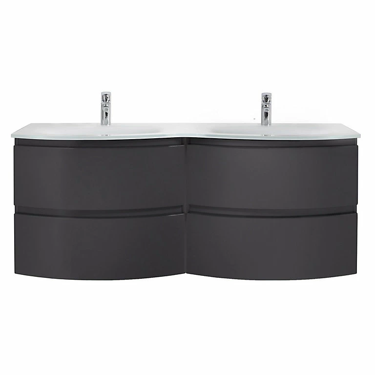 Meuble sous-vasque gris anthracite Vague 138 cm + plan double vasque en résine