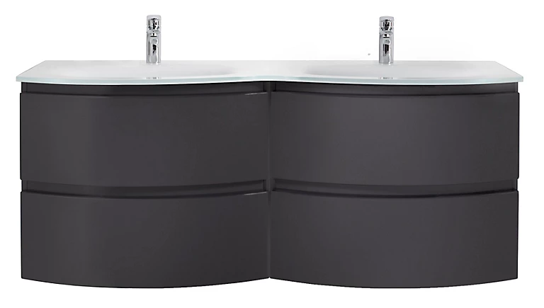 Meuble sous-vasque gris anthracite Vague 138 cm + plan double vasque en verre