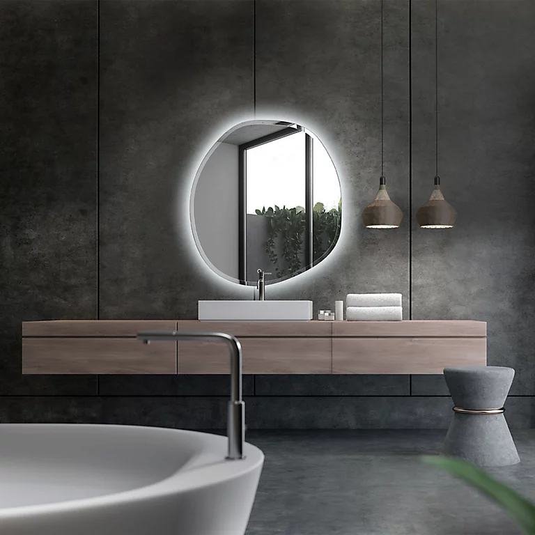 Miroir lumineux éclairage LED rond MPGlass Onde coloris argent Ø100 cm