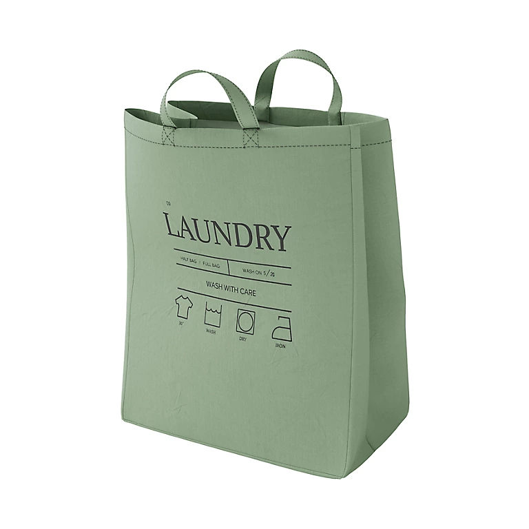 Panier à linge GoodHome Elland capacité 50 litres coloris thé vert en coton L.40 x l.25 x H.53 cm