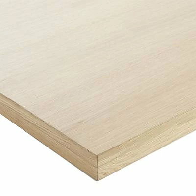 Le plateau du plan comprend des alésages en chêne massif sur la périphérie, et le plaquage est, lui aussi, en chêne blanc. Le panneau MDF (Medium Density Fiberboard) est soit en acacia soit en pin.