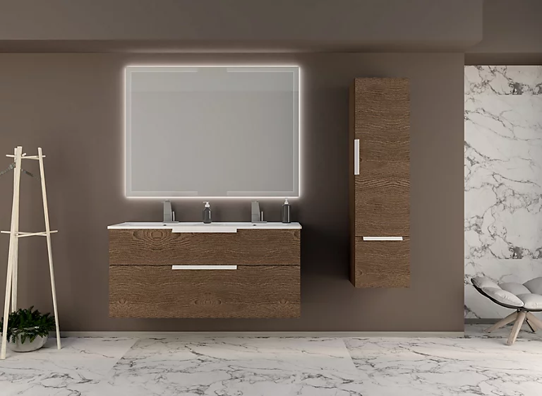 Castorama Meuble Sous Vasque à Suspendre GoodHome Imandra Bois Chêne 100 Cm + Plan Vasque Lana
