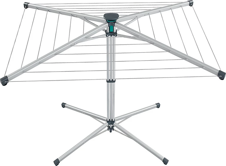 Installé d’une seule main, rangé de manière compacte, le LinoPop-Up 140 est la solution parfaite pour la maison et les déplacements. Il suffit d’appuyer sur la poignée centrale : les quatre bras se déploient doucement et se verrouillent en place. Le séchoir parapluie sur pied est alors prêt à l’emploi. Idéal non seulement pour la maison, les balcons étroits, les petites terrasses ou les salles de bains, mais aussi pendant les vacances au camping et en caravaning. Le LinoPop-Up 140 ne pèse que 3,6 kg : il est très léger et facile à transporter.