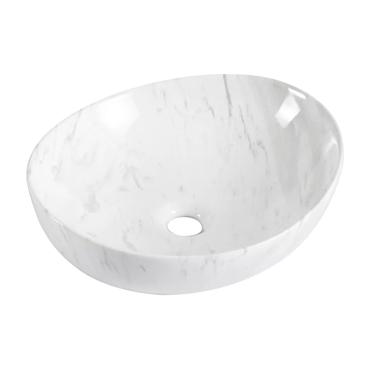 Vasque à poser carrée céramique imitation marbre blanc Bloom