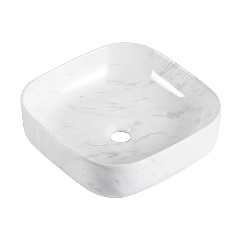 Vasque à poser carrée en céramique imitation marbre blanc l.37 x P.37 x H.12 cm