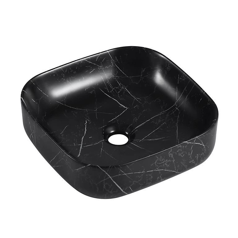 Vasque à poser carrée en céramique imitation marbre noir l.37 x P.37 x H.12 cm