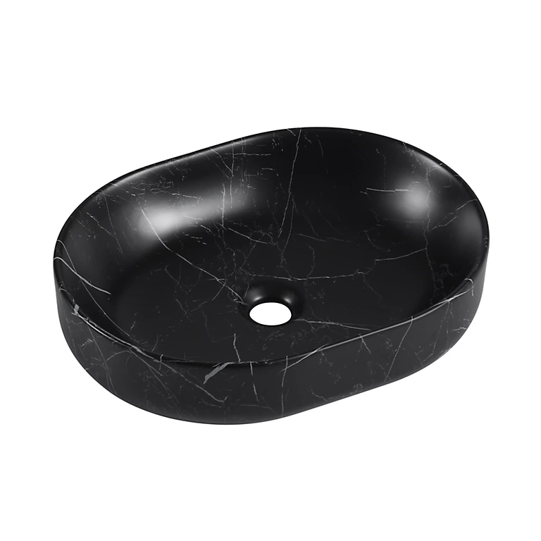 Vasque à poser ovale en céramique imitation marbre noir l.48 x P.37 x H.12 cm