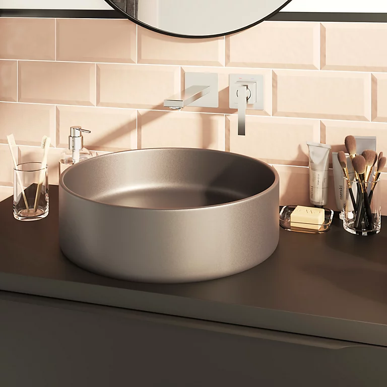 Vasque à poser ronde céramique gris mat GoodHome Samal